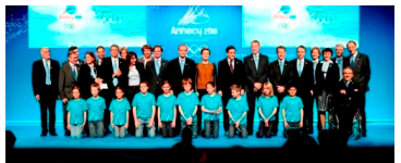 Le Premier Ministre François Fillon et l’ensemble des acteurs du mouvement sportif français ont rejoint l’équipe de la candidature d’Annecy 2018 pour accueillir les 11 membres de la Commission d’Evaluation du CIO au premier jour de leur visite à Annecy. Devant plus de 150 journalistes, ils se sont ensuite réunis pour une grande photo de famille, témoignage de l’unité de tous les Français autour de la candidature.