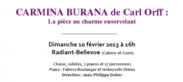 Carmina Burana (Carl Orff) Dimanche 10 février au Radiant (Lyon-Caluire)